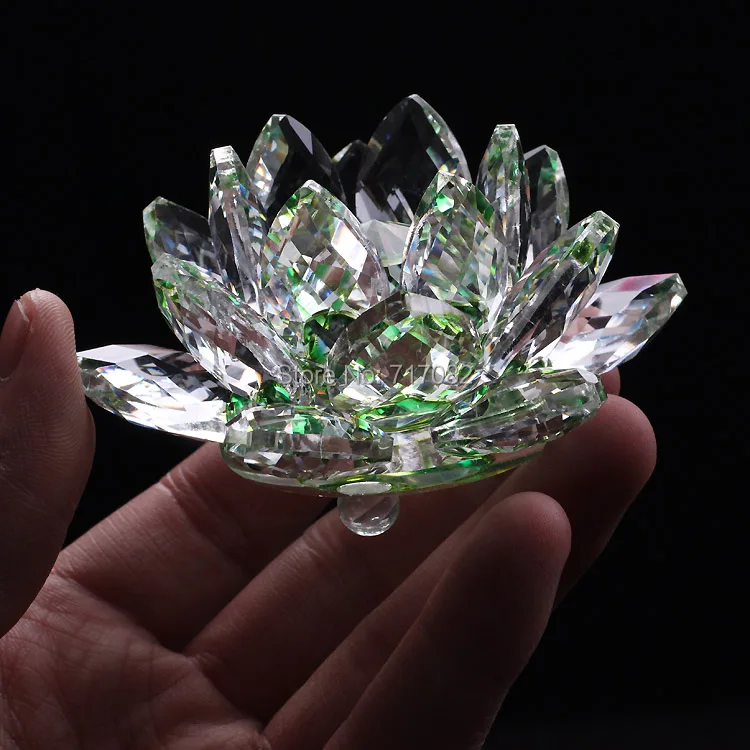 HIGH QUALITY 85mm Green quartz Crystal Glass Lotus Flower Paperweight Feng Shui Crystals flowers Products For Ho