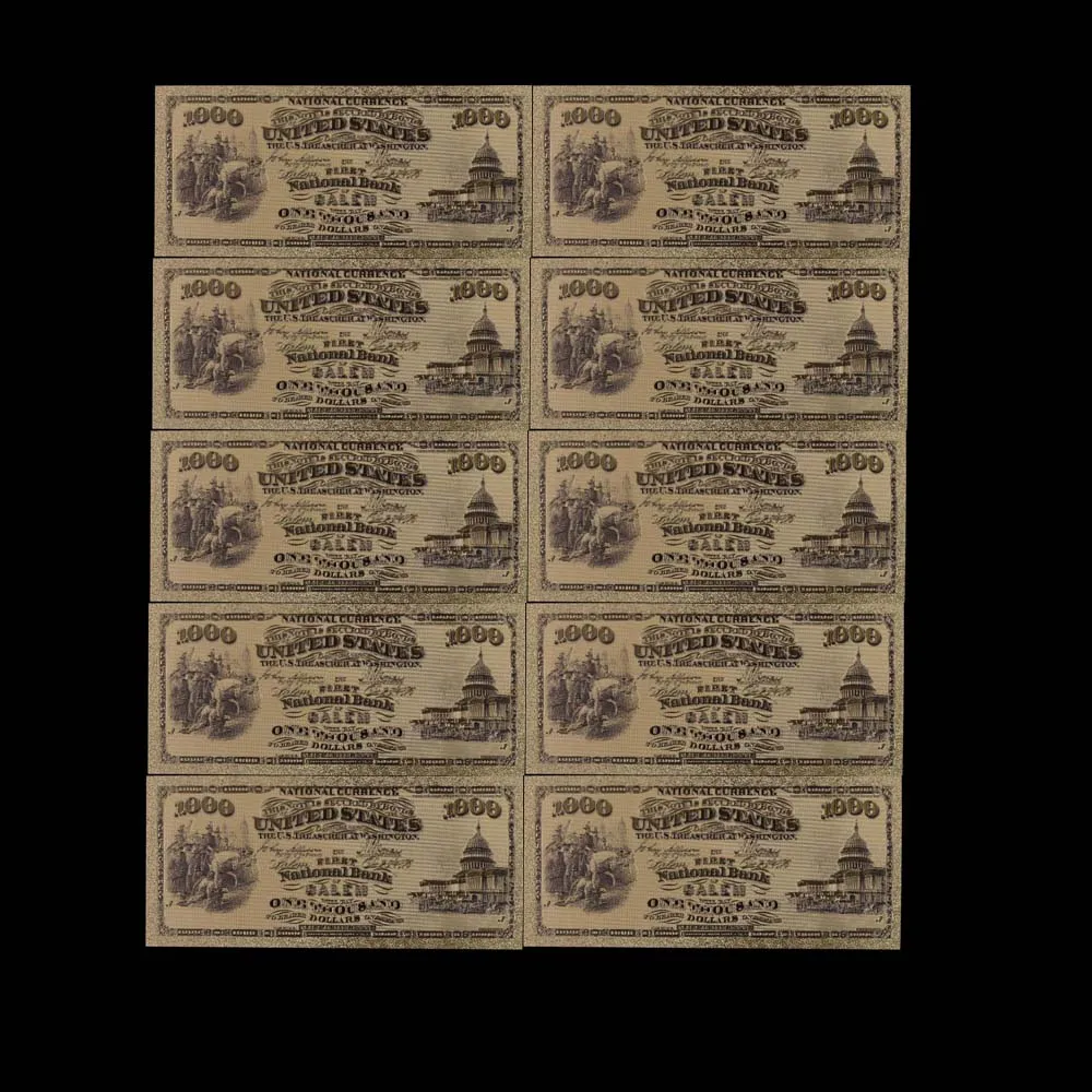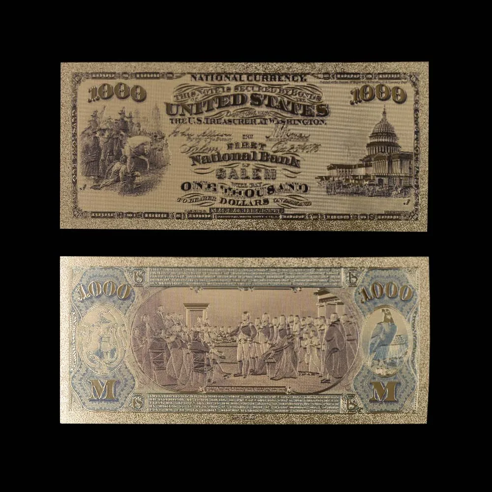 NEW 24K America Colorful Gold Banknote 1000 Dollars Gold Plated Banknote for Souvenirs Fake Bank No