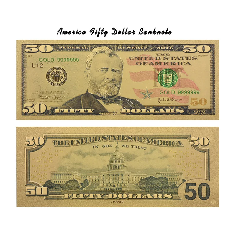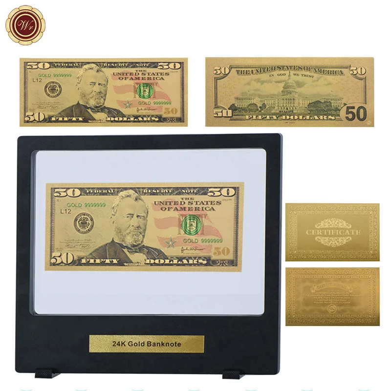 WR American 50 Dollar 24k Gold Banknote Colorful 999.9 Gold Foil World Paper Money Souvenir Gifts w