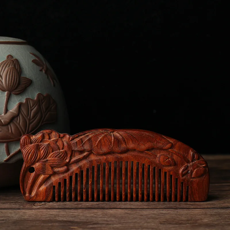HOT Sale Tourism Scenic Area Souvenirs Handmade Carving Sandalwood Comb Anti-static High Quality Sink Valuab