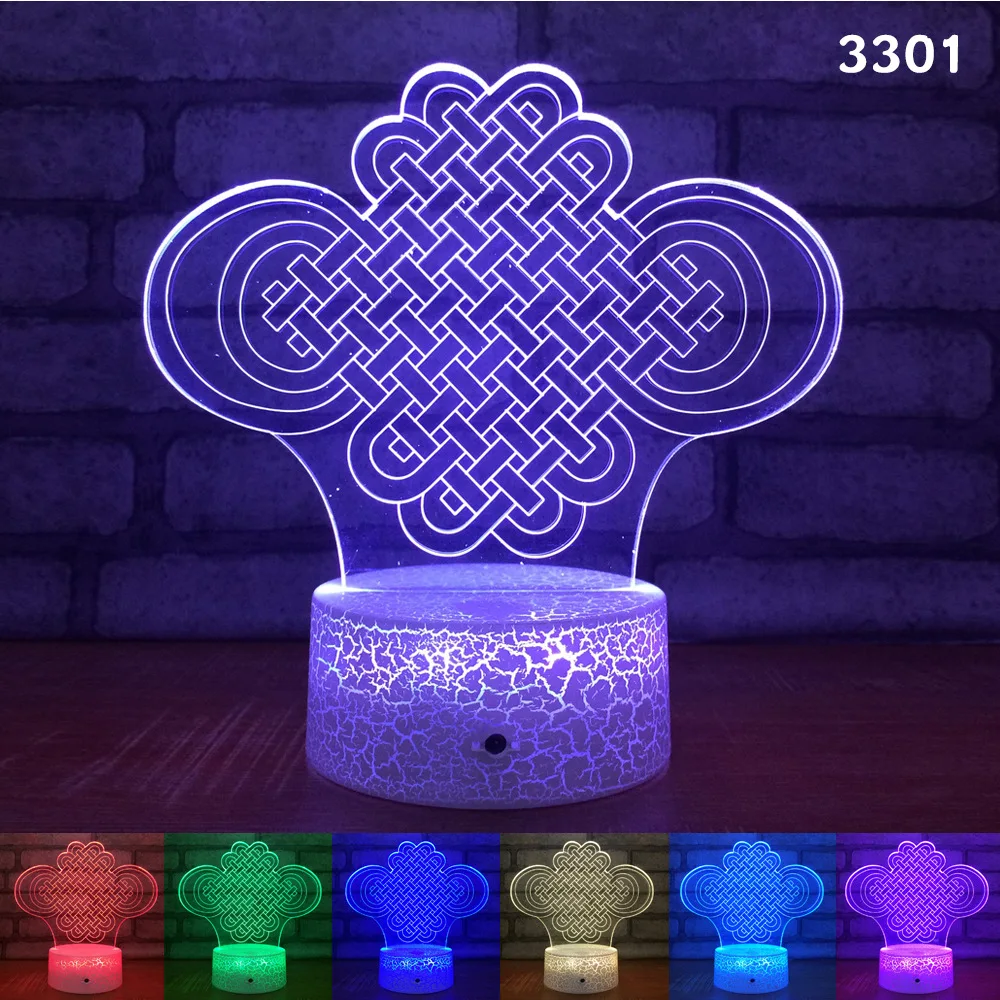 3D LED Night light Acrylic luminaria lampara Chinese Knot 7 Color Change Colorful Crack Creative US